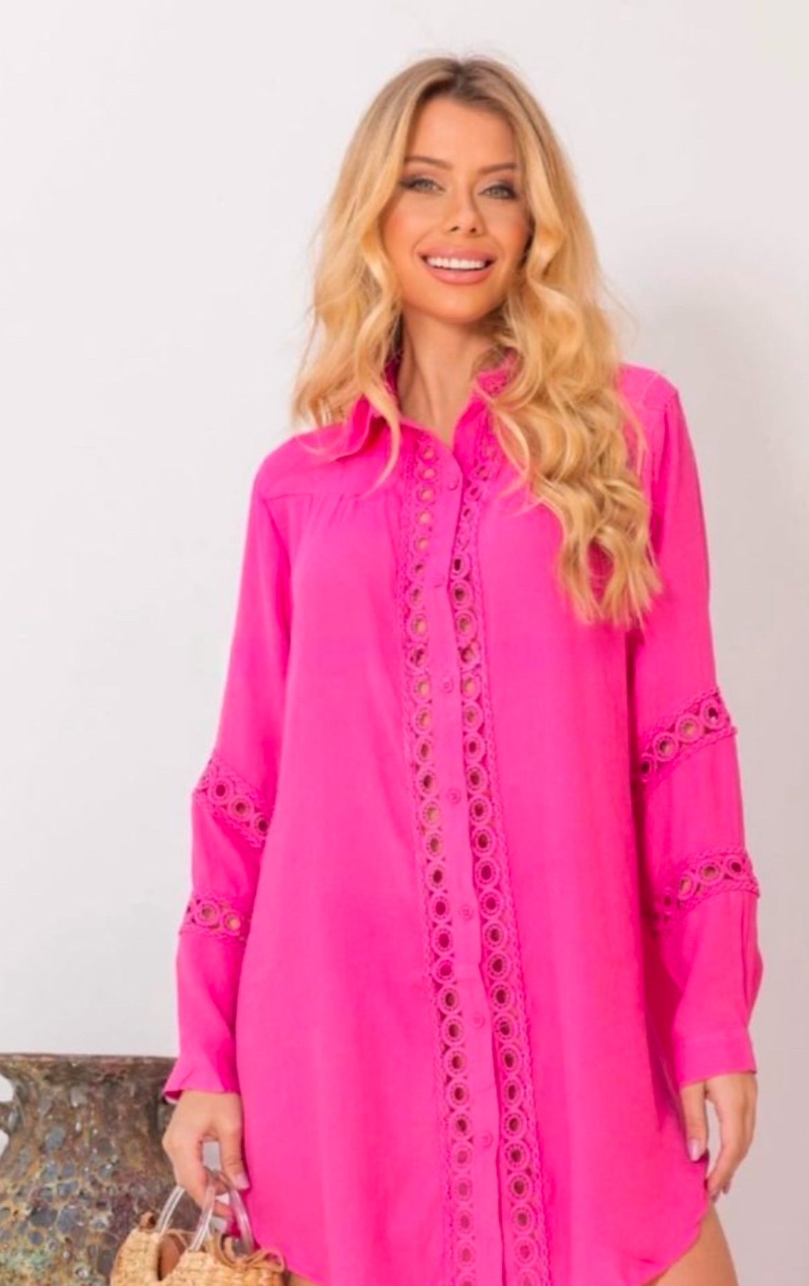 Manga longa com ajuste , acabamento entremeios na parte frontal e mangas